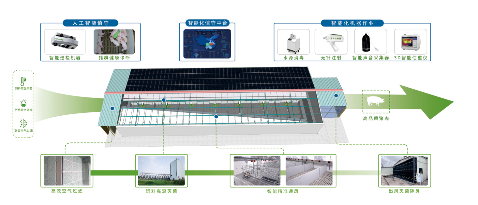提升豬效:新鮮空氣、舒適環(huán)境、潔凈水料、按需供給;智能環(huán)控系統(tǒng)、智能飼喂系統(tǒng)、智能養(yǎng)豬專家。
