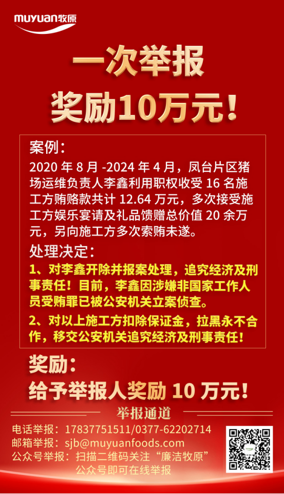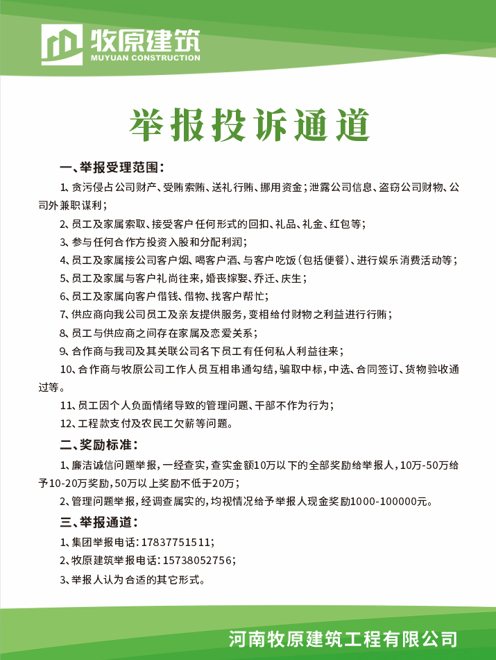 以制度透明筑牢防線,以監(jiān)督機制激發(fā)自覺。牧原建筑明確表示:廉潔誠信不僅是合作的“硬門檻”,更是企業(yè)公民的社會責任。對違規(guī)合作商堅決實施“一票否決”。同時,全面開放舉報通道,設立“廉潔誠信踐行獎”(內(nèi)外獎勵標準一致),構建全員參與的監(jiān)督網(wǎng)絡。此舉旨在推動合作商從“被動合規(guī)”轉(zhuǎn)向“主動履責”,使廉潔誠信內(nèi)化為行業(yè)發(fā)展的共同文化基因。